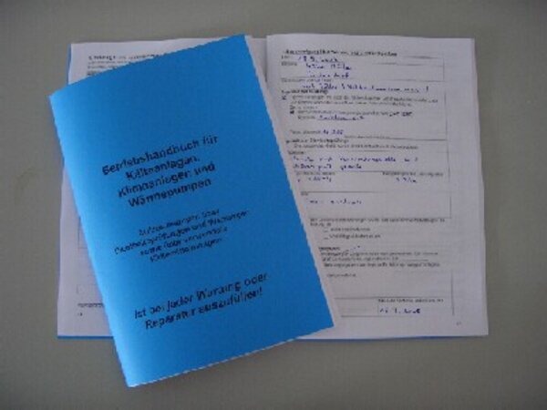 Die Bundesfachschule Kälte-Klima-Technik hat ein solches "Betriebshandbuch" entworfen. Es hat ein handliches DIN A5-Format, umfasst 32 Seiten und ist mit einem haltbaren Schutzumschlag versehen.
