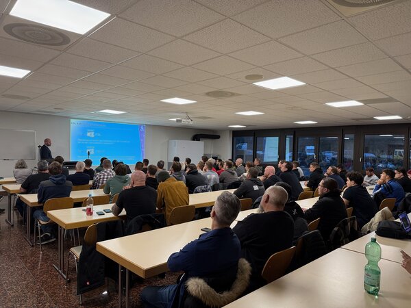 In Maintal informiert Julian Staats von der Firma Epta Deutschland GmbH die über 100 Teilnehmenden über „Gewerbekälteanlagen mit CO2 als Kältemittel“.