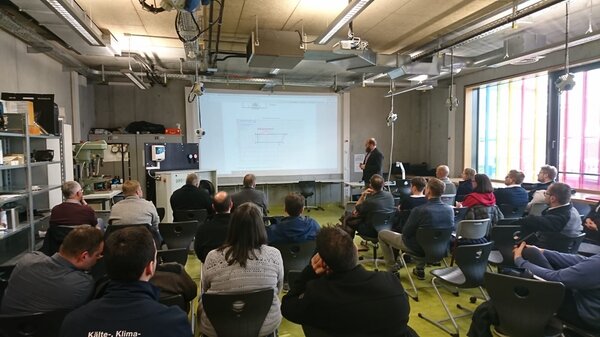 Am 7. Februar 2020 trafen sich Vertreter*innen der Ausbildungsbetriebe zu einem Erfahrungsaustausch an der Berufsschule in Gelnhausen. Robert Heß von der Bundesfachschule Kälte-Klima-Technik in Maintal informierte die Teilnehmer*innen über aktuelle Themen, wie Berichtsheft online, natürliche Kältemittel im ÜLU-Kurs KK5.